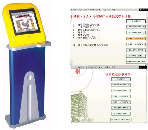 触摸屏系统是用手来触摸操作的计算机多媒体查询一体机。触摸屏系统的使用,可提高房产管理局对外形象,方便客户业务咨询,提高服务质量。